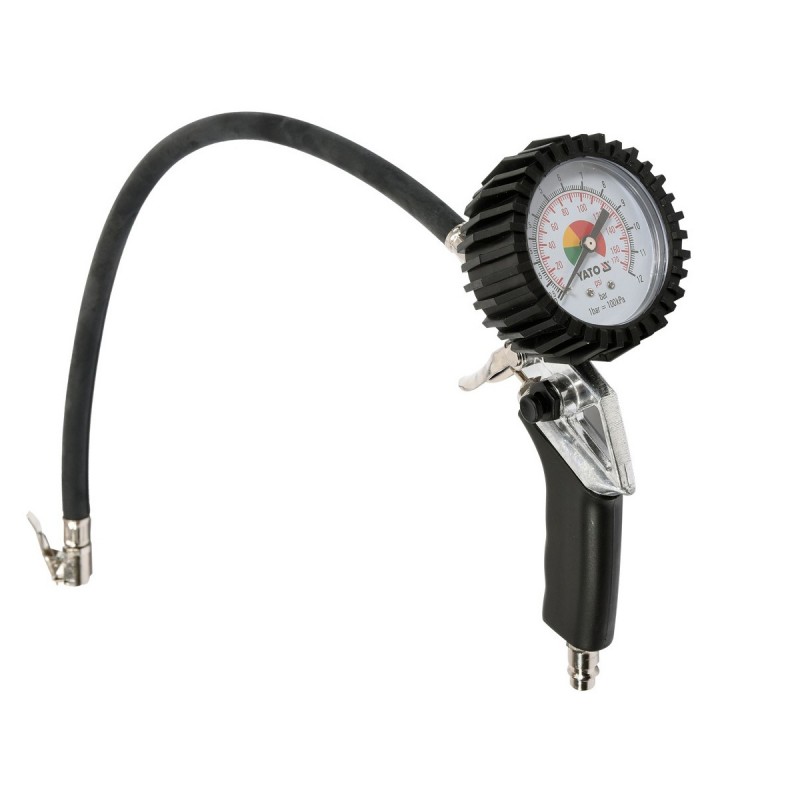 Pistol profesional cu manometru pentru umflarea anvelopelor. Lungime furtun 40cm, presiune maxima de lucru de 0,8 MPa, conexiune 1/4 ", 330g greutate